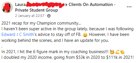 ‘Cos when my client Laura saw the method I teach inside Coaching Business Secrets… she was like:
