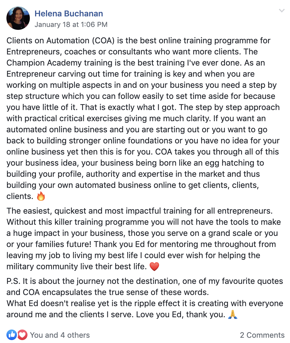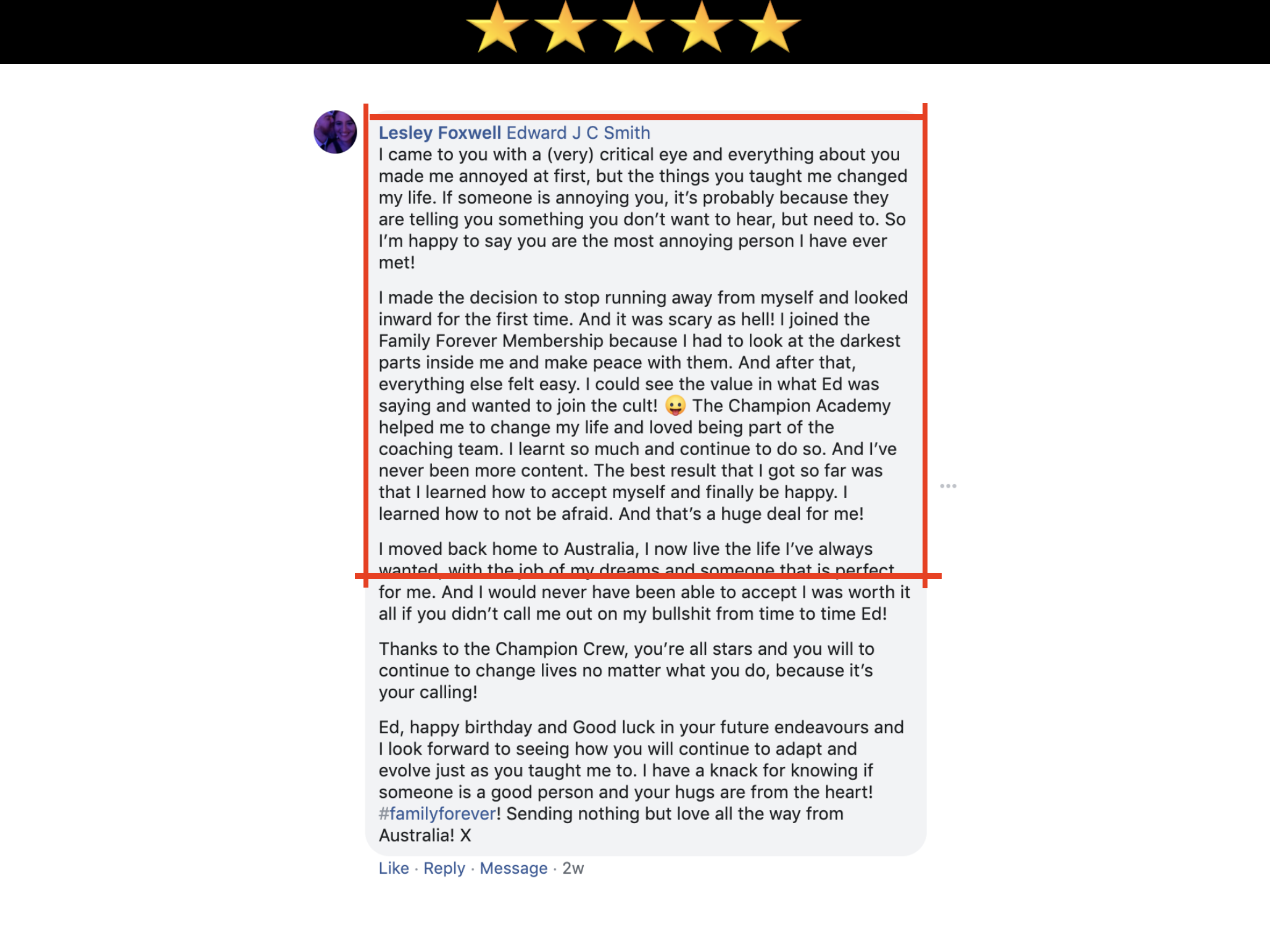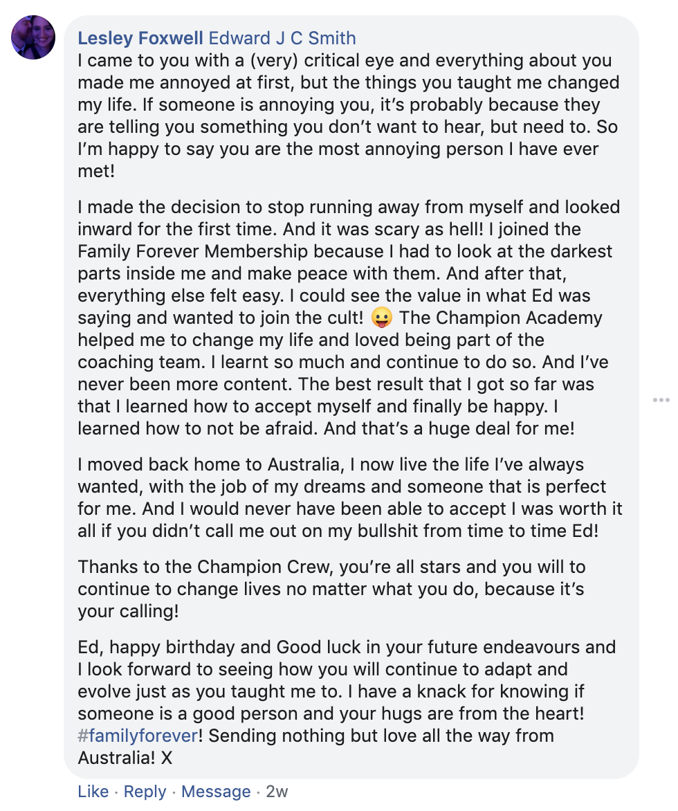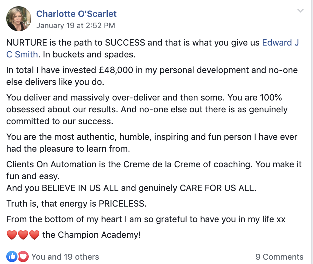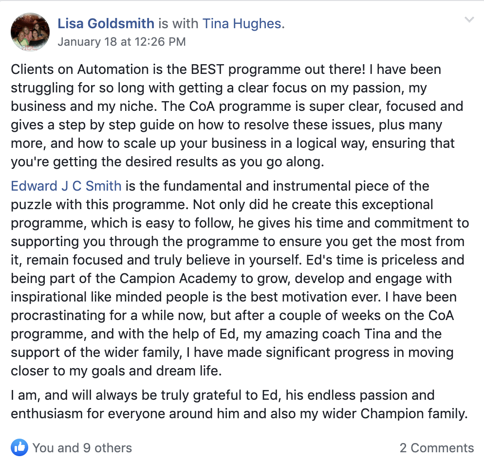 We don't believe in get-rich-quick programs. We believe in commitment, adding value and serving others, and that's what our programs are designed to help you do. As stated by law, we cannot and do not make any guarantees about your own ability to get results or earn any money with our ideas, information, programs or strategies. We don't know you and, besides, your results in life are up to you. Agreed? We're here to help by giving you our greatest strategies to move you forward, faster. However, nothing on this page or any of our websites or emails is a promise or guarantee of future earnings. Any financial numbers referenced here, or on any of our sites or emails, are simply estimates or projections or past results, and should not be considered exact, actual or as a promise of potential earnings - all numbers are illustrative only. Not all results are typical. If you have questions, email info@championacademy.co.uk. We believe integrity and honesty are of the upmost important in life.