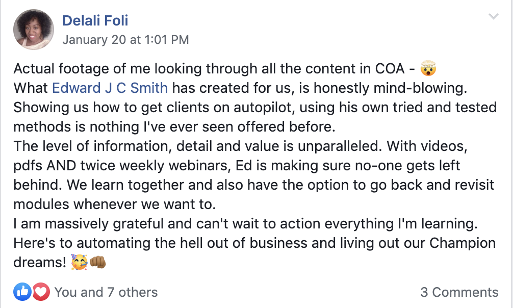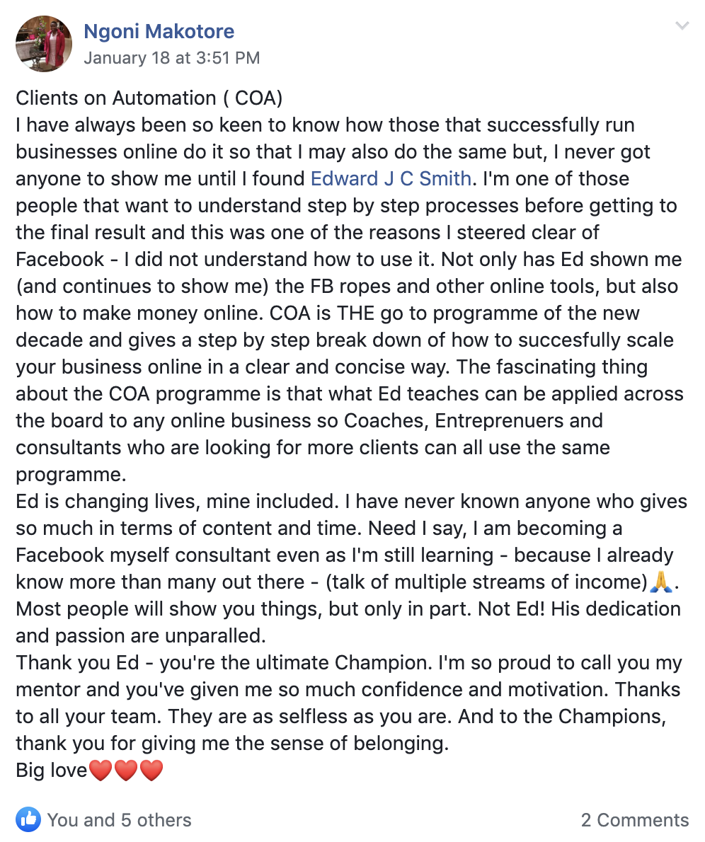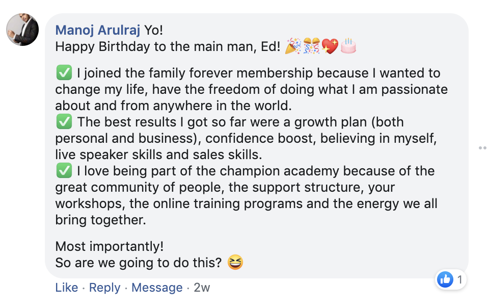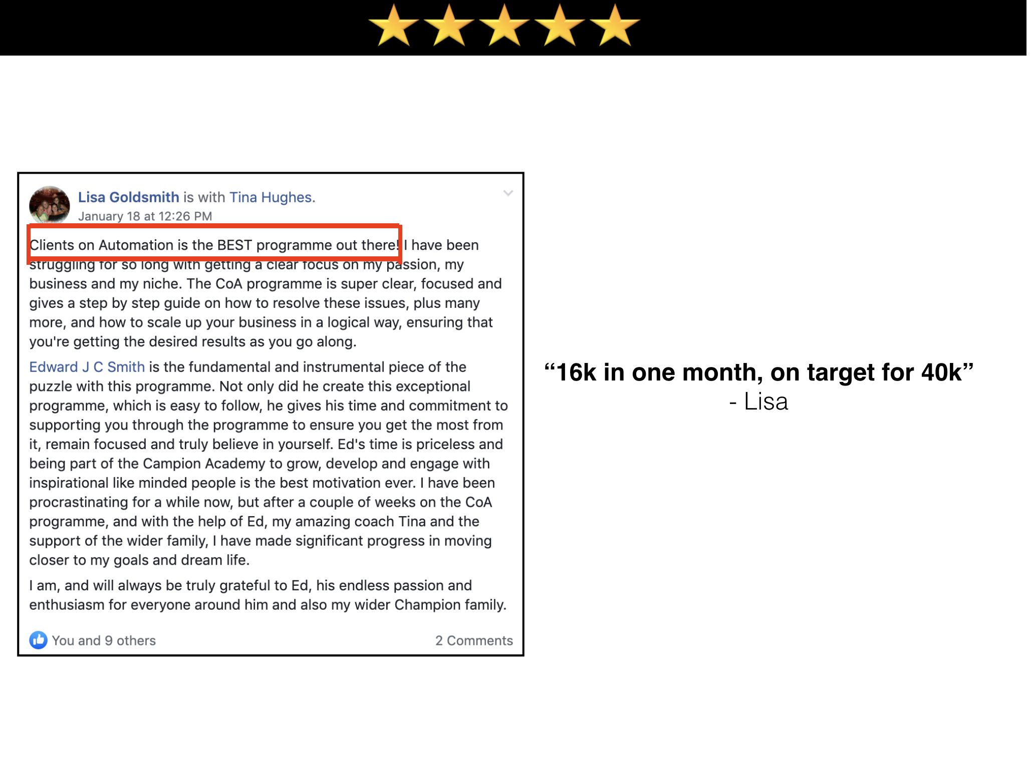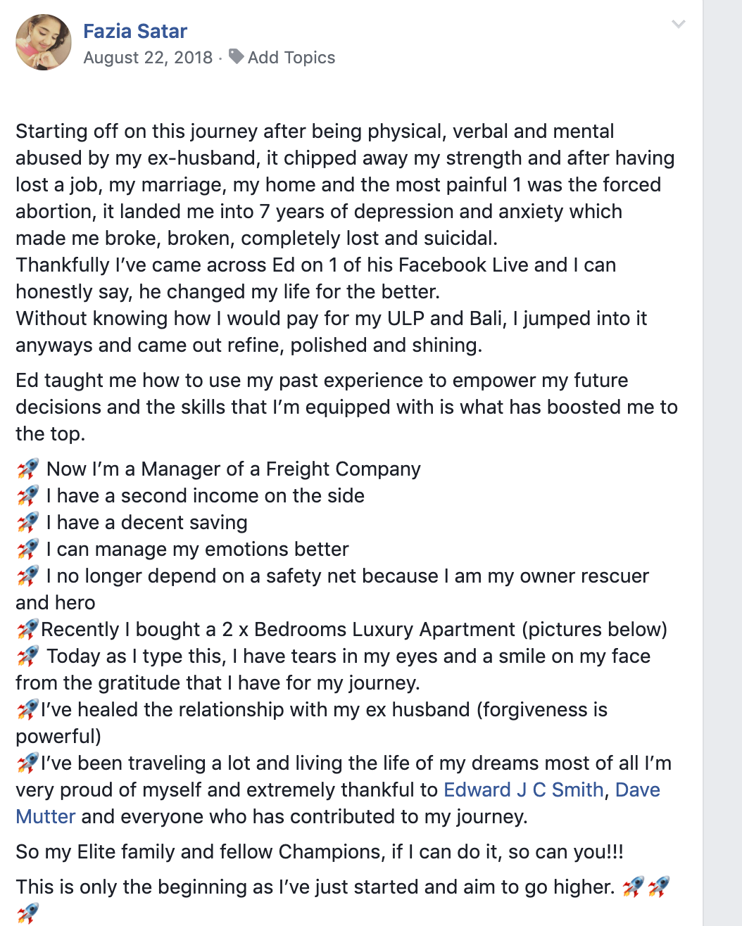 We don't believe in get-rich-quick programs. We believe in commitment, adding value and serving others, and that's what our programs are designed to help you do. As stated by law, we cannot and do not make any guarantees about your own ability to get results or earn any money with our ideas, information, programs or strategies. We don't know you and, besides, your results in life are up to you. Agreed? We're here to help by giving you our greatest strategies to move you forward, faster. However, nothing on this page or any of our websites or emails is a promise or guarantee of future earnings. Any financial numbers referenced here, or on any of our sites or emails, are simply estimates or projections or past results, and should not be considered exact, actual or as a promise of potential earnings - all numbers are illustrative only. Not all results are typical. If you have questions, email info@championacademy.co.uk. We believe integrity and honesty are of the upmost important in life.